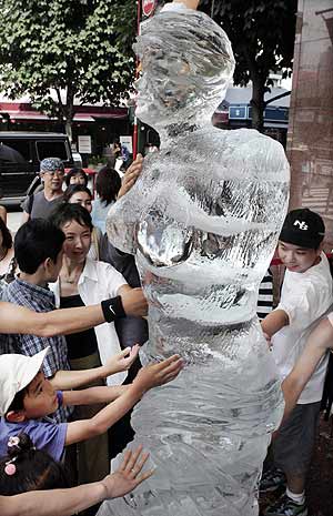 炎炎夏日,大街上突然矗立着一座冰雕,不仅吸引了过往的每一个路人,心里同时也会感受到一点凉意,如果再凑上前去抚摸一下那就更加清爽了。