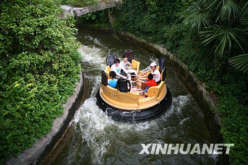 2008年7月12日,人们在上海锦江乐园玩“峡谷漂流”。上海近期出现持续高温天气,不少市民和游客选择周末到海边、公园“亲水”享清凉。