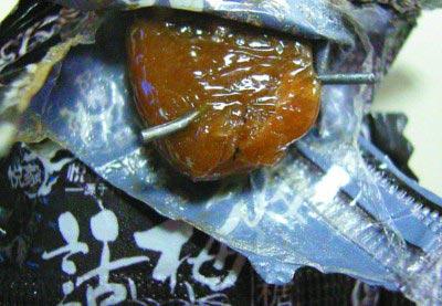糖果里混入铁丝,而且还带有锋利的断面,当消费者向生产厂家反映后,读者樊小姐遇到的厂家居然以“事不关己”的麻木态度对待,无奈之下她向本报读者热线投诉了相关生产企业。