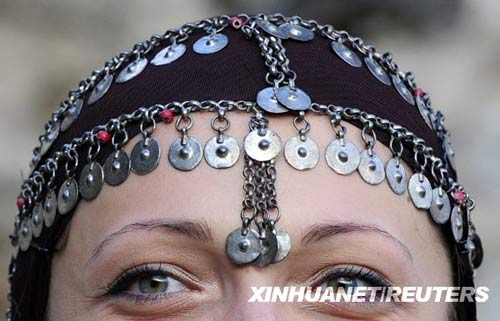 7月12日,在马其顿首都斯科普里以西约150公里的加利奇尼克村举办的一场传统婚礼上,戴着民族头饰的女子喜上眉梢。延续了几个世纪的加利奇尼克传统婚礼一般连庆三天,人们在婚礼举办期间身着传统服装,遵守传统习俗,举办传统仪式,欢跳传统舞蹈。新华社/路透