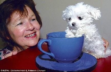 如果你喜欢迷你狗狗的话,那么就来认识一下斯库特尔吧!它是一只马耳他犬,小巧的身躯可以让它舒适地坐在一个茶杯中。据英国《每日邮报》7月15日报道,这只浑身长着雪白绒毛的可爱小狗只有3英寸(约合7.62厘米)长(从鼻尖到尾端),比目前“世界最小狗”纪录保持者还要小。