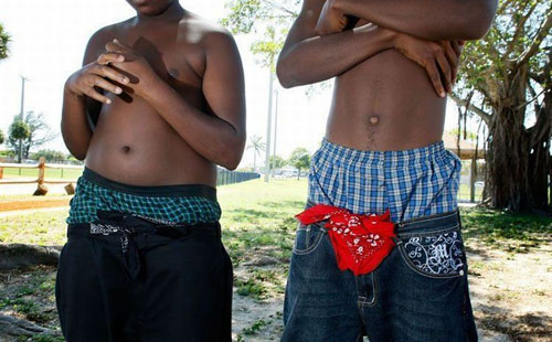 国外一些国家的男孩近几年开始流行穿着松垮、不系皮带的裤子,并且故意暴露内裤裤头。后来甚至部分年轻的女性也开始跟上这股潮流,露出绑着性感内裤或丁字裤的吊带。目前,针对这种穿衣现象,美国有好几个城市明文禁止穿低腰垮裤,其中路易斯安那州的德肯勃,罚金最高达五百美元,或长达六个月的徒刑。