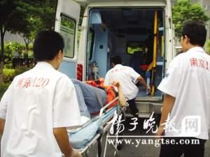 记者到现场时,年轻女子已从事发现场地上,爬进了离跳楼现场约30米的小区5号楼楼道内,她浑身是伤,躺在楼道内浑身发抖。嘴中发出痛苦的呻吟声。民警刚刚赶至,封锁了现场,同时呼叫120救护车增援。不一会儿,急救医生赶到,迅速对受伤女子进行诊断,与民警一道将受伤女子送上急救车。