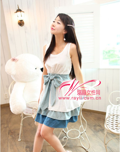 渐变的蓝色清爽浪漫,腰间的蝴蝶结更营造出与众不同的效果!