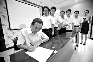 9月1日,北京地区的几位律师代表在建议书上签字。当日,上百名律师联名要求对婴幼儿儿童日用化妆品进行立法。本报记者 浦峰 摄