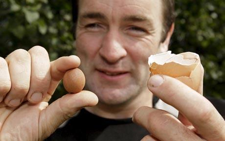 据英国《每日电讯报》报道,40岁的杰夫·泰勒跟44岁的妻子米歇尔在英国赫里福德怀河畔罗斯(Ross-on-Wye)开了一家农产品店。泰勒在吃早饭时,剥开的一个煮鸡蛋让他大吃一惊,他在这个鸡蛋里发现一个形状完好的“蛋中蛋”。外面的蛋直径大视频:英国农场发现神奇蛋中蛋