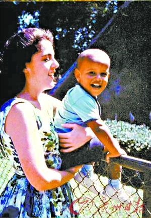 为两岁的奥巴马与母亲在一起。