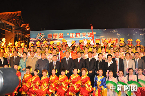 中新网天津9月21日电 (记者 王宝德 王穗)“游船码头摩天轮,我与天津是近邻”。20日晚,流光溢彩的天津海河畔古文化码头亲水平台,一场精彩的秦皇岛“非遗”民俗演出吸引了众多天津市民驻足。这是9月20日开幕的“2009中国旅游产业节”上,秦皇岛“走进天津”旅游推介招商活动的重头戏。