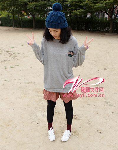 灰暗宽松卫衣为你赢来不错的好感度,搭配橘色短裤,丰富整体造型色彩!