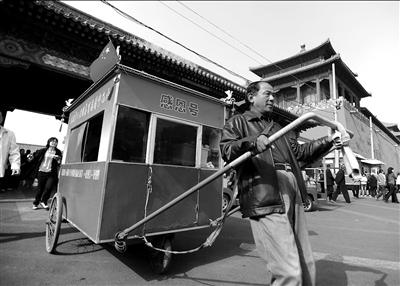 昨天上午,一辆写有“感恩号”字样的三轮人力“房车”出现在午门。拉车的是58岁的哥哥王凯,推车的是56岁的弟弟王锐,79岁的母亲王玉霞坐在车内,笑盈盈地欣赏风景。王凯说,他们是黑龙江蓝西县人,受台湾一民间组织邀请,将一路徒步拉人力车送母亲赴台。这已是他们第二次推车出行了,2007年,他们曾徒步赴香港。