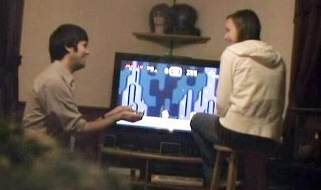 在和女友丽莎相恋五周年纪念日当天,布拉德把她叫到家里,提议玩玩《超级玛丽》。不明就里的丽莎玩着玩着,突然发现游戏画面上的金币依次排列出“丽莎,你愿意嫁给我吗?”的字样,又惊又喜的她环顾四周,发现男友布拉德已经跪在身边,他捧着戒指,深情地对女友说:“丽莎,你愿意嫁给我吗?”接下来发生的事和布拉德设想的一样,女友答应了他的求婚,两人紧紧抱在一起。
