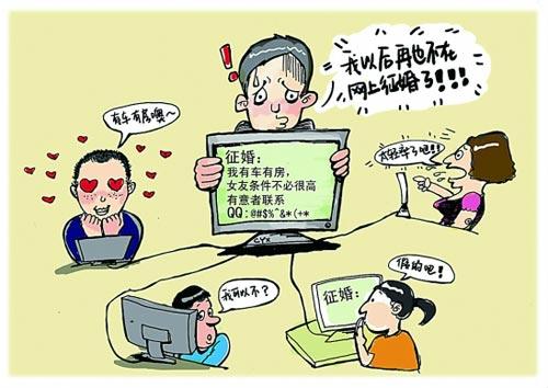 网友“Daniel”也对网络征婚持否定意见。他说,自己曾经回复过别人的征婚帖,对方加了他QQ,也告诉他“我们从普通朋友做起”,但以后就再无下文。那之后他就对网络征婚失去了兴趣。