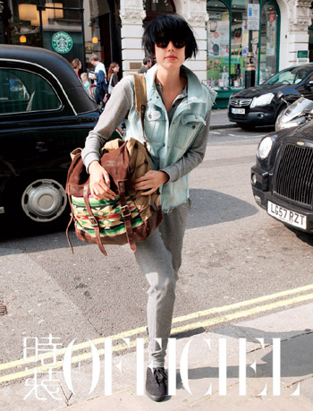 3:Boy Friend阔腿牛仔配一件女性化的上衣。这也算是时尚搭配中最基本的中和理论 。
