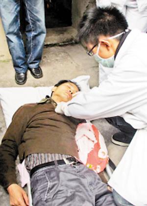 医生为自杀者处理伤口