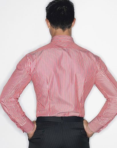 什么叫做合身的衬衫?不要只关注前面,更重要的,你需要转过来,看看你后被的线条。合身与否,马上显现。