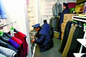 昨日(11月10日),执法人员在五道口一家服装店内检查印有中文“鳄鱼”标签的服装。当日,海淀工商分局对五道口、北太平庄和中关村3家涉嫌侵权冒用“鳄鱼”中文标志的服装店进行了查处,暂扣599件涉嫌侵权“鳄鱼”的棉服、夹克、衬衫、毛衣。 本报记者 廖爱玲 秦斌 摄影报道
