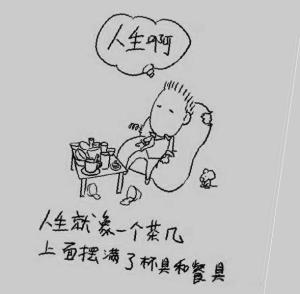 除了词语之外,有关“杯具”的句子也被网友们“发展”了一下,其中最著名的“人生就像一张茶几,上面摆满了杯具”一句,便被称为“人生是个杯具”之后的杯具箴言2.0版本。记者了解到,此句是网友仿照张爱玲的“人生是一袭华美的袍,上面爬满了虱子”改写而成。