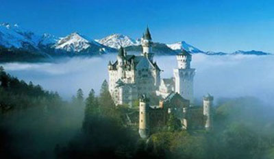 新天鹅城堡,又名"福森白雪公主城堡",是座白墙蓝顶的神话城堡,坐落于德国拜仁州Fuessen小镇上,在阿尔卑斯山脉中,始建于1869年。