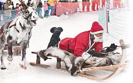 这座瑞典城市耶利瓦勒,位于北极圈内60英里处,已经连续6年举办圣诞老人运动会。本次运动会项目包括爬烟囱、吃粥、包扎礼物和赛驯鹿比赛。陈先生击败了其他8个来自布隆迪和澳大利亚等国的选手,取得了冠军。