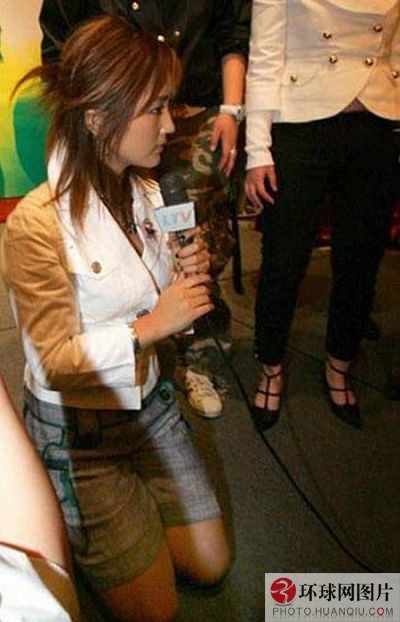 超女何洁在一次接受采访时主动跪下,据说当时电视台的记者采访她时,因为话筒线不够长,她主动配合采访就委屈了自己。引来网友们对何洁此举的破口大骂,说她哗众取宠太低级。
