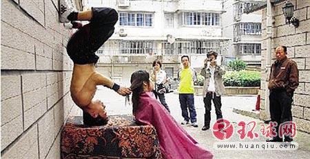 “功夫剃刀”长沙一理发师倒立着剪发