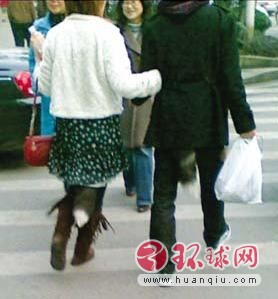 一对年轻的情侣手挽手走在大街上,两人衣服背后竟各有一条狐狸尾巴。1月19日,有网友在网上发帖称,自己在杨家坪直港大道遇到了身着“狐尾装”的一对男女,并附有手机拍摄的照片。该帖发出后,引来网友热议,许多80后的网友直呼“妖孽”,并大叹跟不上这种怪异潮流。