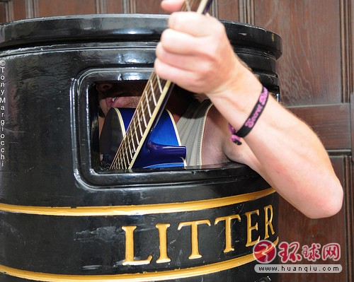 英国剑桥市30岁男子查理·卡维是一名身高近1.8米的壮汉,但人高马大的卡维经常抱着一把吉他躲进路边肮脏狭小的垃圾桶内,并自弹自唱。据悉,卡维独创的“垃圾桶卖唱”令他成为剑桥市的街头明星。