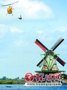 27米高的空中,一个身影出现在盘旋的直升机外,纵身一跃。翻转、回旋,他优雅地落入下面的湖水中。表演这一跳水绝技的是年龄35岁的哥伦比亚运动员奥兰多·杜克。他正为参加在荷兰举行的红牛世界悬崖跳水系列赛第二轮比赛刻苦训练。