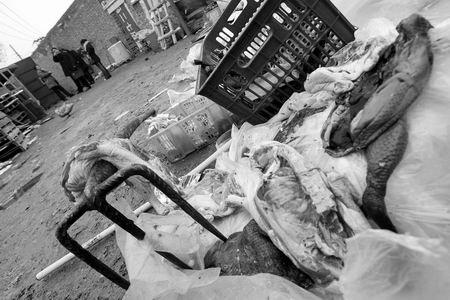 昨天早晨6时30分许,天空飘着雪花,记者再次赶到废品收购站,大门依然紧闭,一个小时后,依旧不见有任何动静。“莫非他们察觉到了动静,今天关门不营业了?”就在记者满怀疑虑等待时,只见两个头裹围巾的女子敲门走进了小院。透过门缝,可以清晰地看见两个人着“工作装”蹲在地上挑拣白塑料袋中的肉。