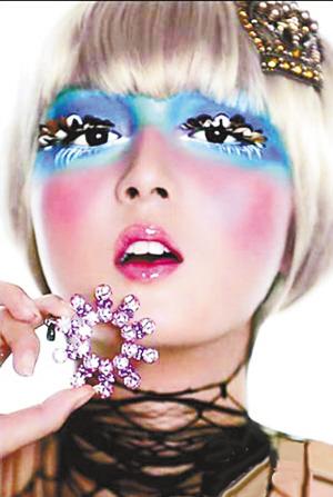闪亮的服装当然要有闪亮的妆面来配了。小P老师说,为了搭配服饰,脸上的妆容应该也要有闪亮的元素,不过要注意不能选择珠光的粉底。“派对上常会拍照留念,如果你选用一款珠光粉底的话,那么闪光灯下,你的脸会增大一倍。”安全的办法,就是选用亚光粉底。