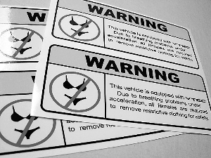 本车辆配备了先进的加速设备。由于加速过程中会让人呼吸不畅,要求所有女性为了安全起见除掉紧身衣物。