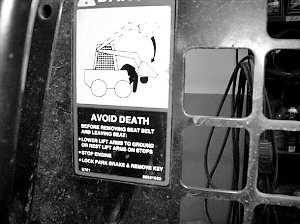 这幅小型拖拉机的警示语为“避免死亡”。荣膺2009年美国最愚蠢说明。