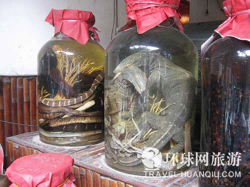 外国人能喝到蜥蜴酒刚刚是数十年的工夫,而且这种酒是一直被视为进口奢侈品的。这种绿色的喝起来有点像白兰地的酒是将蜥蜴、壁虎和人参一起泡在米酒桶里制成的。喝这种酒,据说可以避邪、明目。