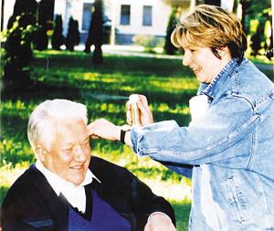 1996年自感“有点肥”的塔季扬娜和父亲叶利钦在一起。