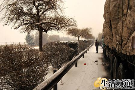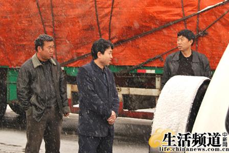 往四平的路上,吉林慈善会汲寿平主任(中)风雪同行