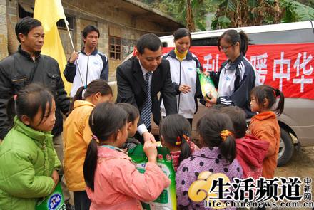 雅士利爱心小组向瑶族小孩发放豆奶粉