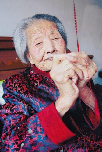 老人的房间收拾得干干净净,她正在整理衣箱。“听说记者要来,她自己要找好看的衣服穿。”平时,洗漱、洗衣,定期洗澡、换衣服,都是老人自己做,别人帮她干她还使劲往回抢。老人最令人吃惊的本事是还能穿针引线,多年来她养成了自己缝补衣服的习惯,从不让别人代劳。当着记者面,她就纫起了针线。“不行喽,老了,手发抖了。”穿针缝补时老人的手有些发抖,她还觉得不好意思呢。