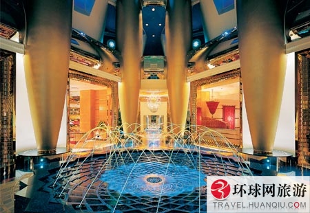 帆船酒店就像一只坐落在迪拜地平线上的帆船,走进第25层的皇家套房,从地板到天花板你都可以看到波斯湾的风景,私人的电梯,私人的电影院,旋转的大床,可上网的笔记本。价格是每晚14974美元。