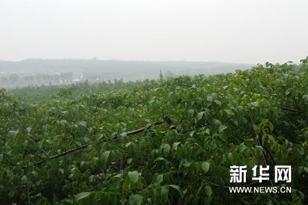 1999年开始,李保国在太行山干旱丘陵岗地临城开辟治理战场,他踏遍乱石遍地、荆棘丛生的荒岗,确立了“聚土聚水”开发策略,成功选育出独一无二的核桃品种——绿岭核桃。这个春天绿岭的核桃树再一次挂了果,可为这片土地呕心沥血的李保国却永远地走了。图为绿岭的果园。新华网记者 张雪花 摄