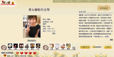 中新网4月21日电 据加拿大《世界日报》报道,约大中国留学生柳乾在加国遇害,她的父亲柳建辉表示,三年来至今,夫妇俩每日必做的一件事,就是打开计算机,进入为柳乾设立的两个网上纪念馆,为她献花、上香、送衣服、送食物。