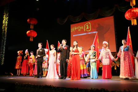 9月20日晚上,巴黎综艺剧场门前的列廊柱上贴着“我和我的祖国”的条幅,剧场前厅内大红灯笼高高挂,新中国60年的辉煌历程以图片展示于走道两边,欧洲时报的《华诞特刊》向每个人免费发送,来自四面八方的中国留法学子兴高彩烈排队而入,参加由全法中国学者学生联合会在这里举行的“我和我的祖国”——庆祝祖国建国60周年文艺晚会。