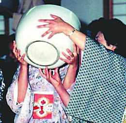 现在,饮茶已成了日本人的日常生活习惯,但很多人仍然相信寺院的茶水能祛病除邪。西大寺每年春秋举行的“大茶盛式”都人满为患,尽管门票4000日元一张,还是极难买到。仪式本身与其说是分发茶水,更像是宗教仪式表演。参加者被带到铺着榻榻米的日式房间,跪坐在蒲团上等待。寺院长老在众僧侣簇拥下,神态庄严地缓缓踱进屋,开始讲述大茶碗的来龙去脉。听者正襟危坐,说者话音朗朗。然后,长老在众人注视下煎煮茶水。茶有两种,一种是煎茶,即把茶叶投入开水直接煎熬;还有一种是日本特有的抹茶,先把烘干的茶叶粉碎,然后加入开水搅拌成糊状。喝茶时5人一组,分得一个大茶碗。长老用长长的茶勺象征性地向碗里注入茶水后就可饮用了。