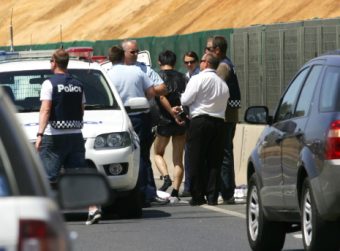 19日,警方在接到报案后,于上午10点55分赶到Waurn Ponds校区。在大学正门口,警方看到被告一手持一柄10厘米长的利刀抵在女友的咽喉处,另一手环抱女友上身,威胁警察不要走近。警方大约花了半个多钟头与程家豪交涉。事后,警方发言人表示:“当时肇事者的情绪非常激动,我们简直听不明白他想说什么,他显得很情绪化。后来,他越来越激动,但警方还是继续和他口头交涉。最后,他的情绪一下子爆发了,开始对我们大嚷大叫,让我们走开。他说人质是他的女朋友,而且他不信任我们。”据悉,程家豪还曾要求警方开车把他和人质送到别处。后来,两名警员趁被告持刀的手放下时,冲上前向被告面部喷洒辣椒喷雾,将其制服,并让其戴上手铐,押送往当地警局。当天,程家豪在用刀绑架女友后,还打伤了两名前来阻止的女教师,她们分别是37和56岁。程的女友手部被割伤,两名女教师受了轻伤。