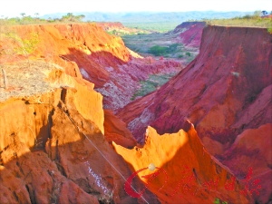 第二天,我们经过两个多小时颠簸来到叫“RED TSINGY”的景点,这里实际是一片红土高原被河流侵蚀而成的大峡谷。我们随着导游一脚高一脚低地下到峡谷底部,突然一条小河挡住我们的去路,正当我们犹豫怎么过河的时候,只见导游直接踏着沙洲过河,原来这些沙支撑力超强,完全不会陷进去,我们有样学样也做了一回“铁掌水上飘”。峡谷的尽头,我们看到了马达加斯加的石林,实际是红土被水冲走之后,坚硬的砂岩留下来,一根根密密麻麻像针一样耸立在河边,置身其间如同置身银色的刀丛中,让人惊叹造物主的神奇。