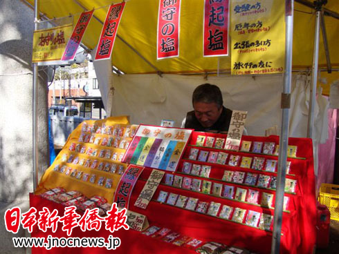 早就听说日本人对盐是情有独钟的。新年过后,我途经东京早稻田大街的“穴八幡神社”,进去转了转,居然在里面发现了一个摆盐摊的。