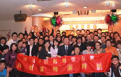 教育室刘占山室长致祝酒词。西日本地区学友会会长张朔源同学作为留学生代表在联欢会上发言。2010年度西日本地区学友会主要成员也登台向大家拜年。