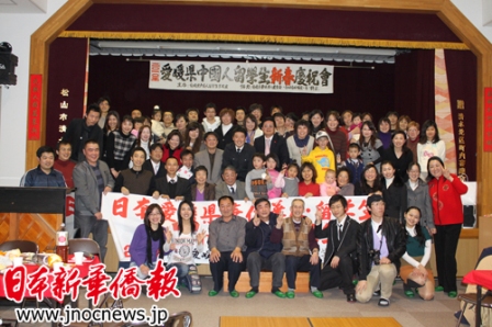 在爱媛大学和松山大学的大学学习的中国留学生和他们的家属、爱媛县华侨华人联合会部分会员以及爱媛县日中友好协会、松山市鹊会的日本友人共百余人参加了庆祝会。