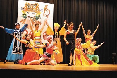 7时整,随着宏亮清脆的“好日子”歌声,深红的大幕缓缓拉开,巴城中文学校东方歌舞表演队员身着各族传统服饰,拉开演出序幕。