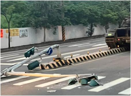 又出事!台媒:台军一辆坦克冲上隔离带撞断交通信号灯杆