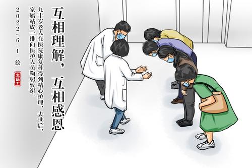 【挑战365天正能量速写画】第183期:90岁老人病逝后家属向医生鞠躬致谢